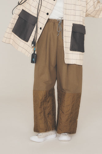 • ウォッシュトキルティングタックワイドパンツ_brown