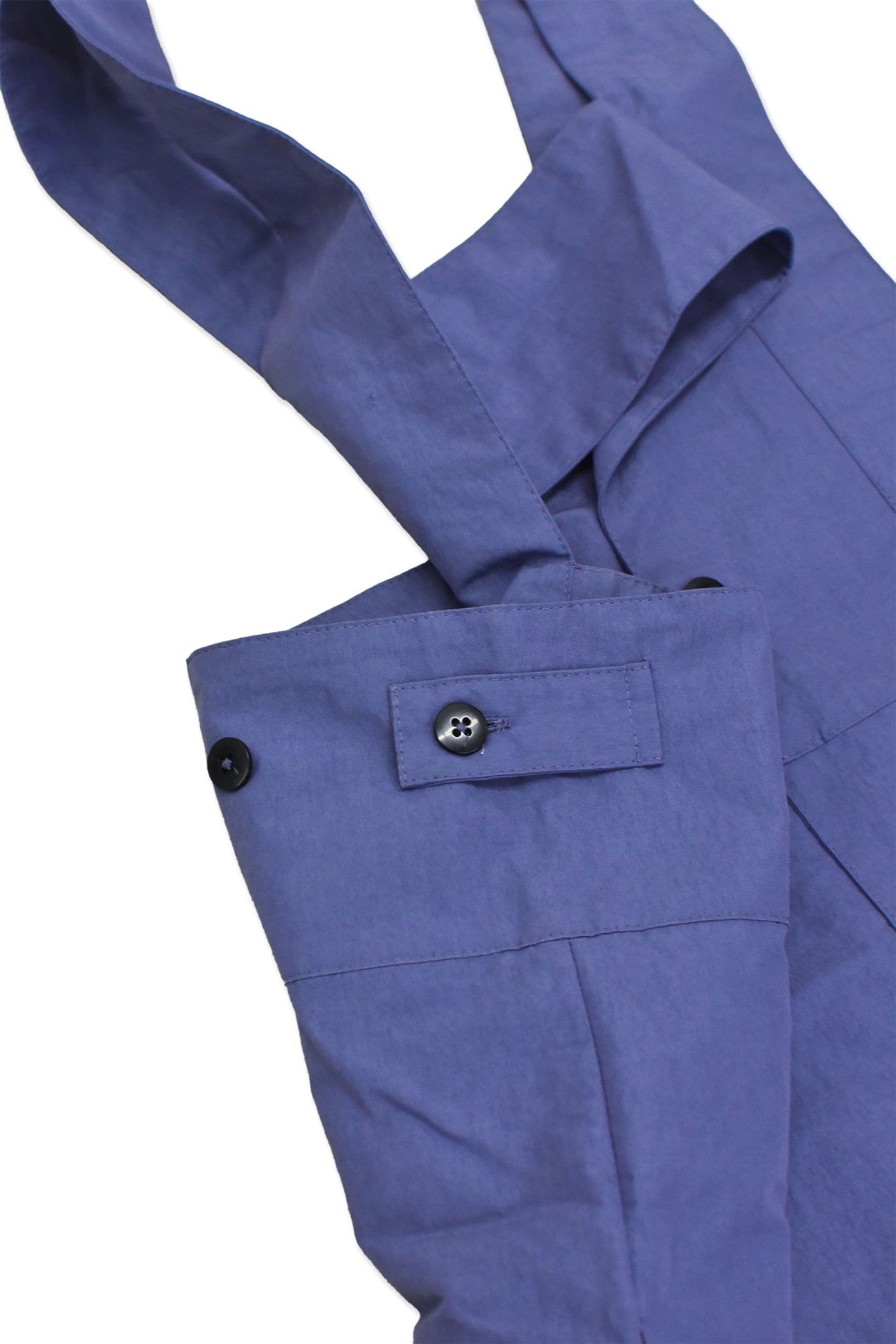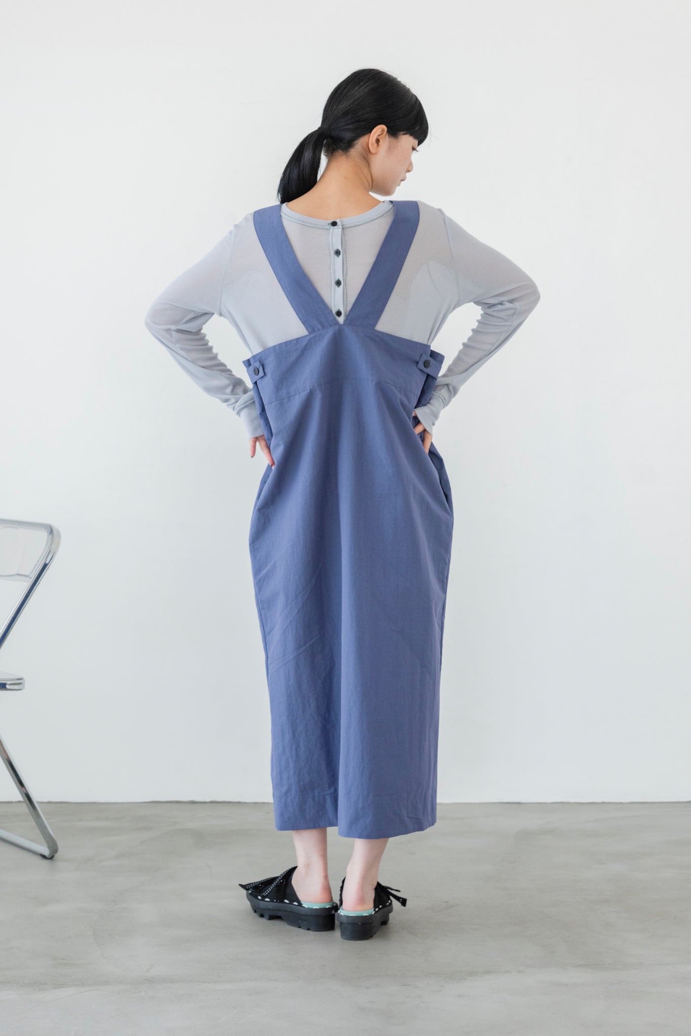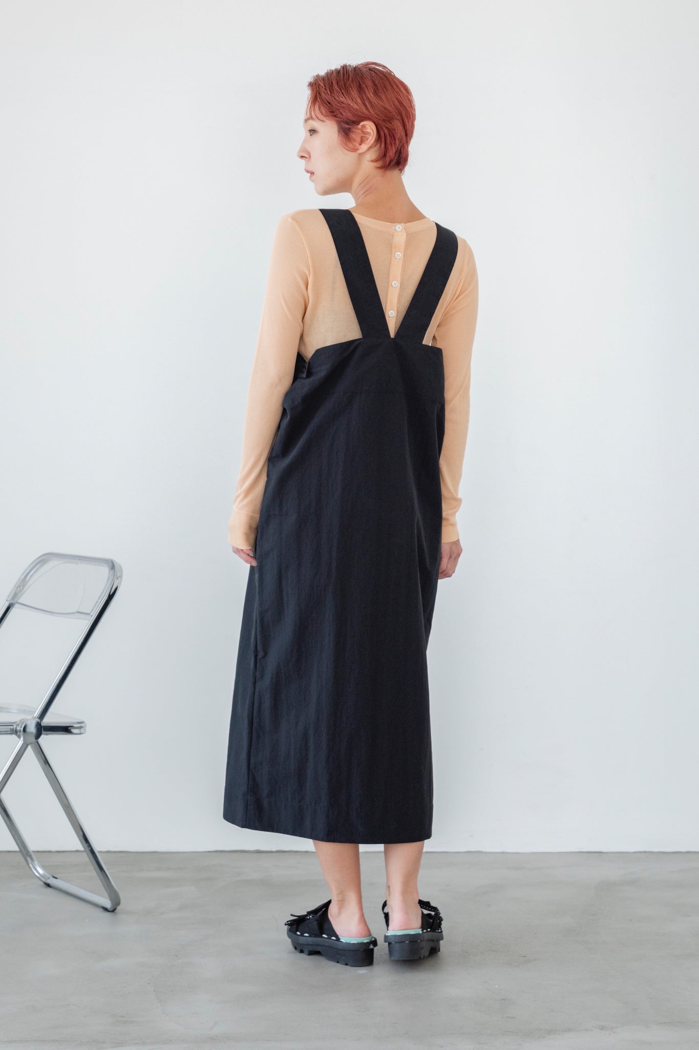 フロントのスリットとベルトのディティールが作るジグザグなフォルムがポイントのジャンパースカート。ベルトは二通りにたためて、印象を変えられます。
