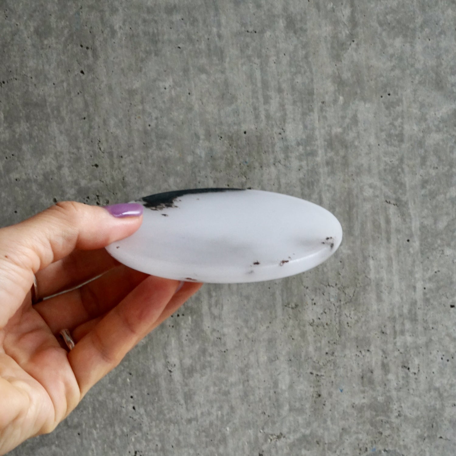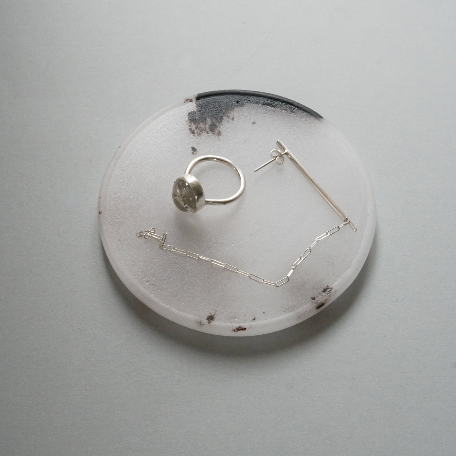 フラットでごくシンプルなフォルムで素材の美しさが際立ちます。かすかなゆらぎのあるラインで構成されていて一点ものならではの味わいがあります。水墨画のようなにじみが美しく絵画のようです。