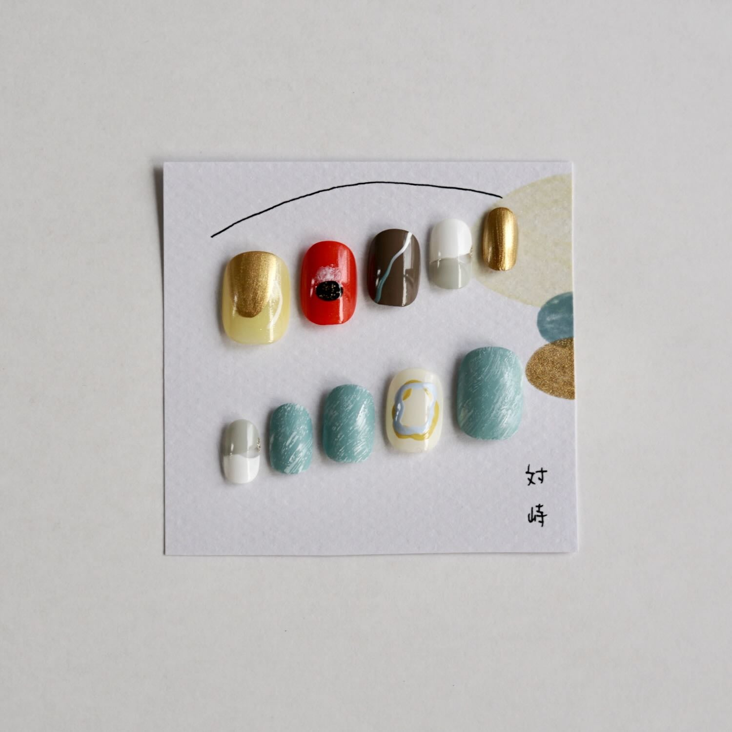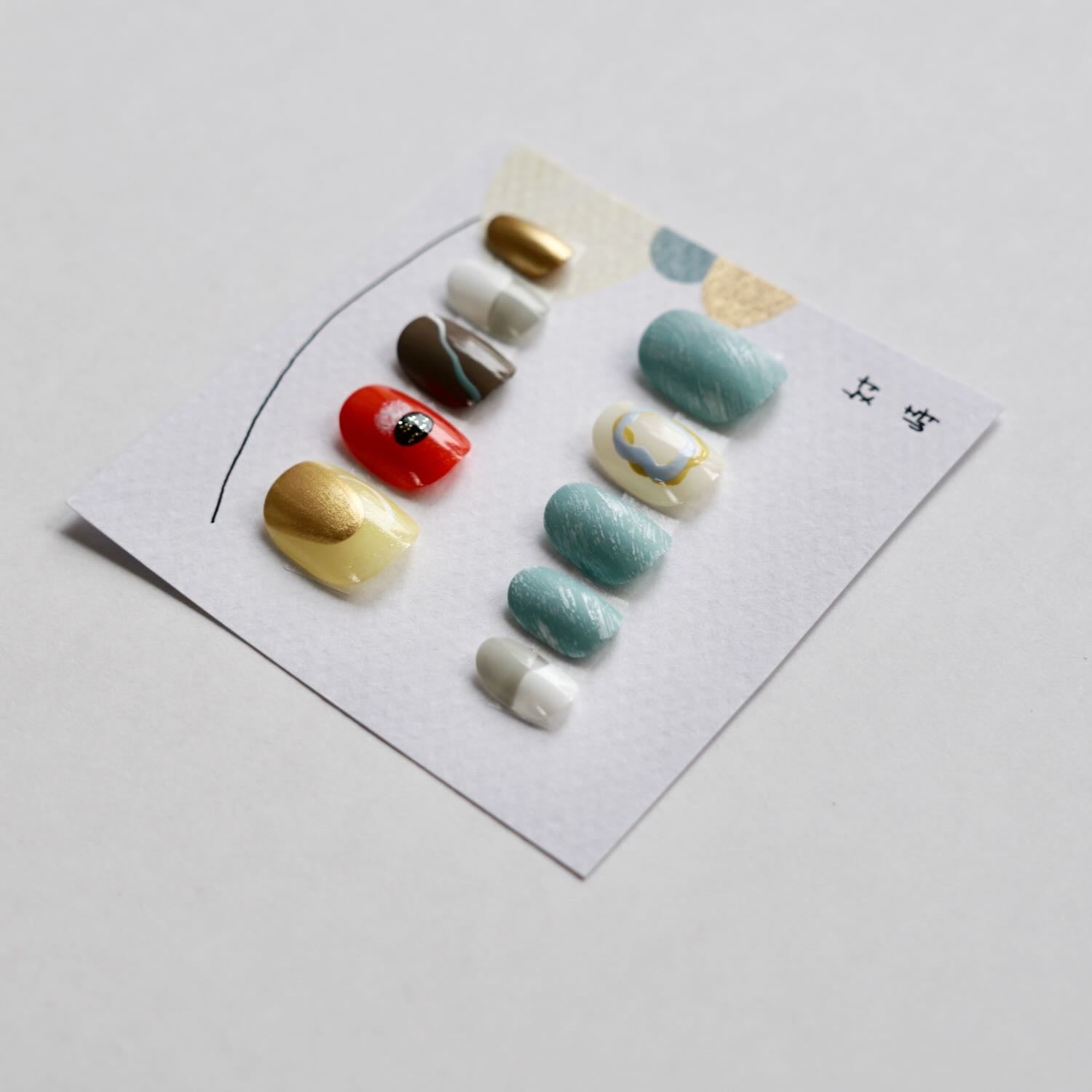 甘さがなくてグラフィックとして捉えてもかっこいい、爪につけるのはもちろん、飾って眺めるだけでも楽しい、タイトルや台紙、つめさんの言葉、まるごと味わえるつけ爪です。