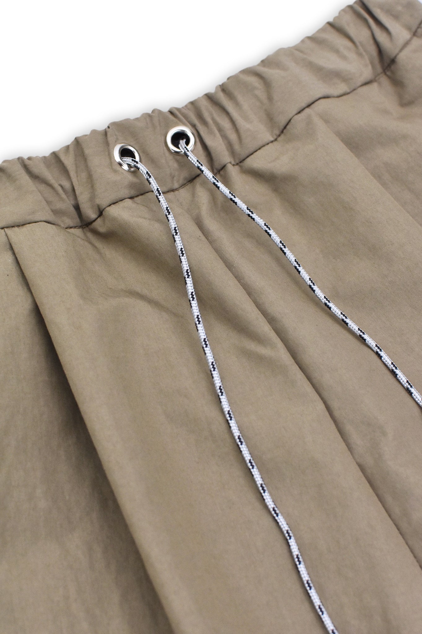 ウェストはゴムと紐が通っています。幅広い身長、体格の方に履いていただけるSNEEUW定番の人気の形のワイドパンツです。