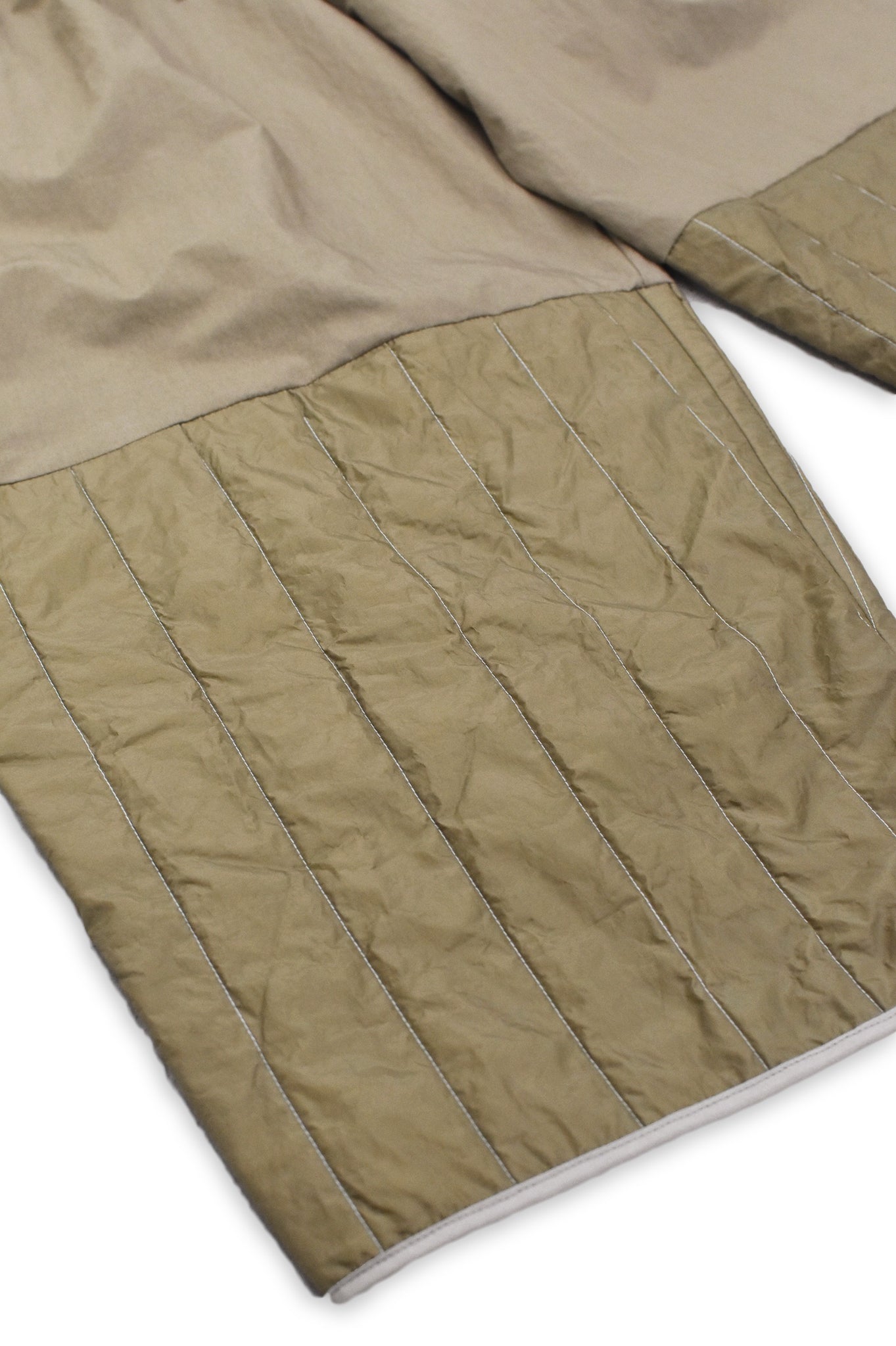 上半分は洗いのかかったコットンナイロンでできていて、程よく体に馴染み、膝から下は厚みのあるキルティング素材でシルエットがキープされます。