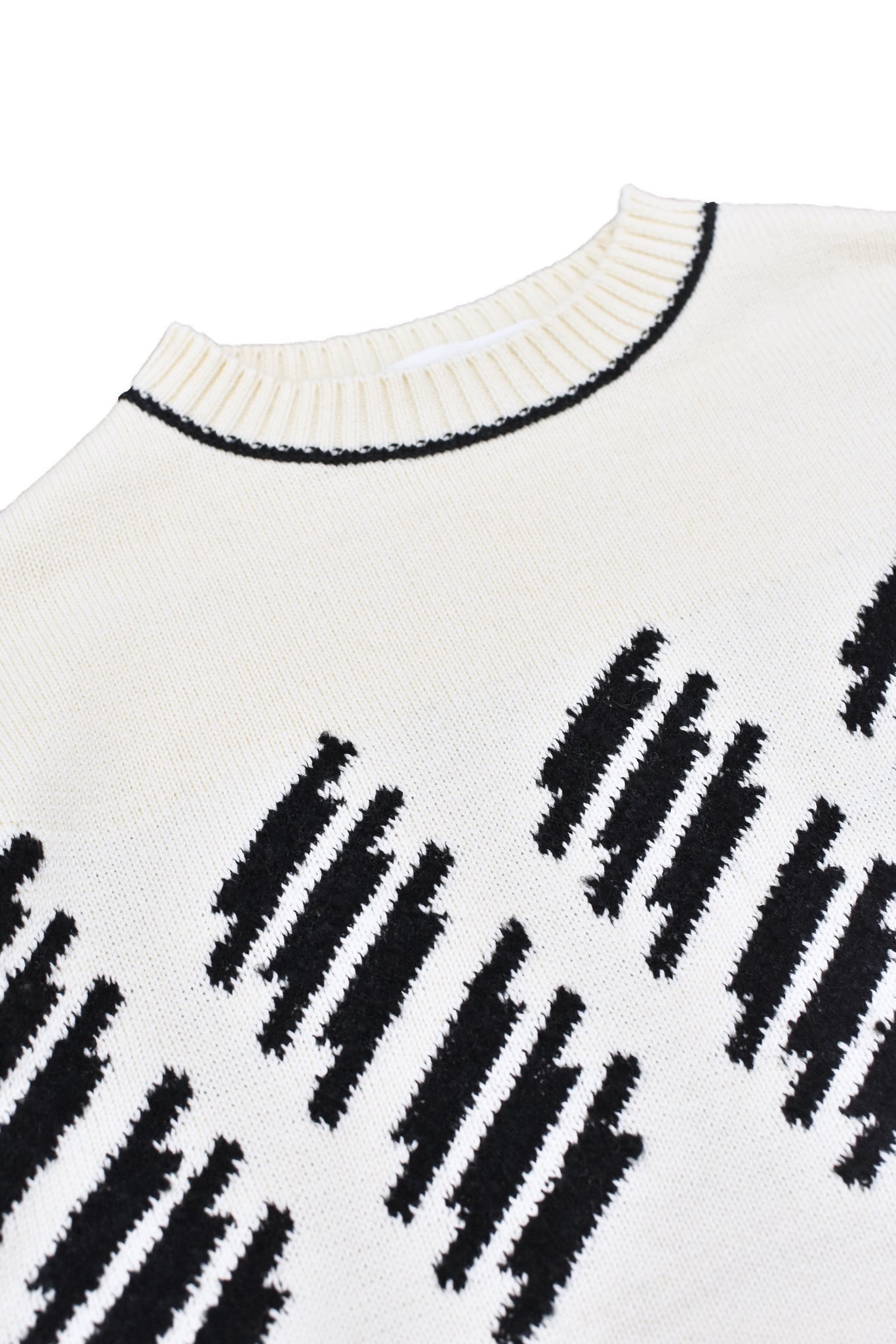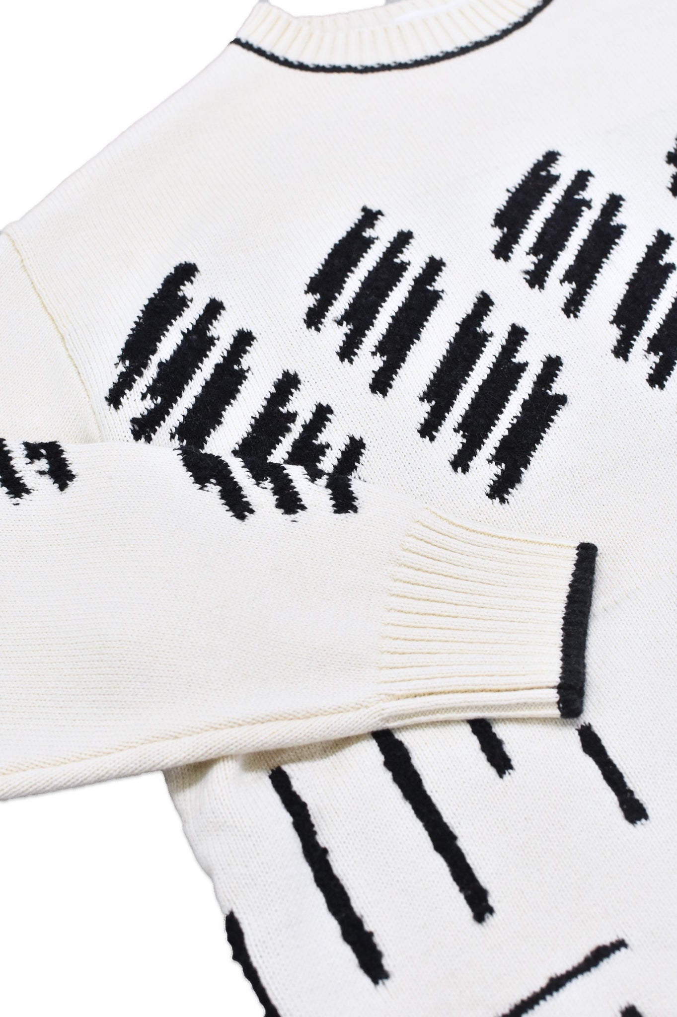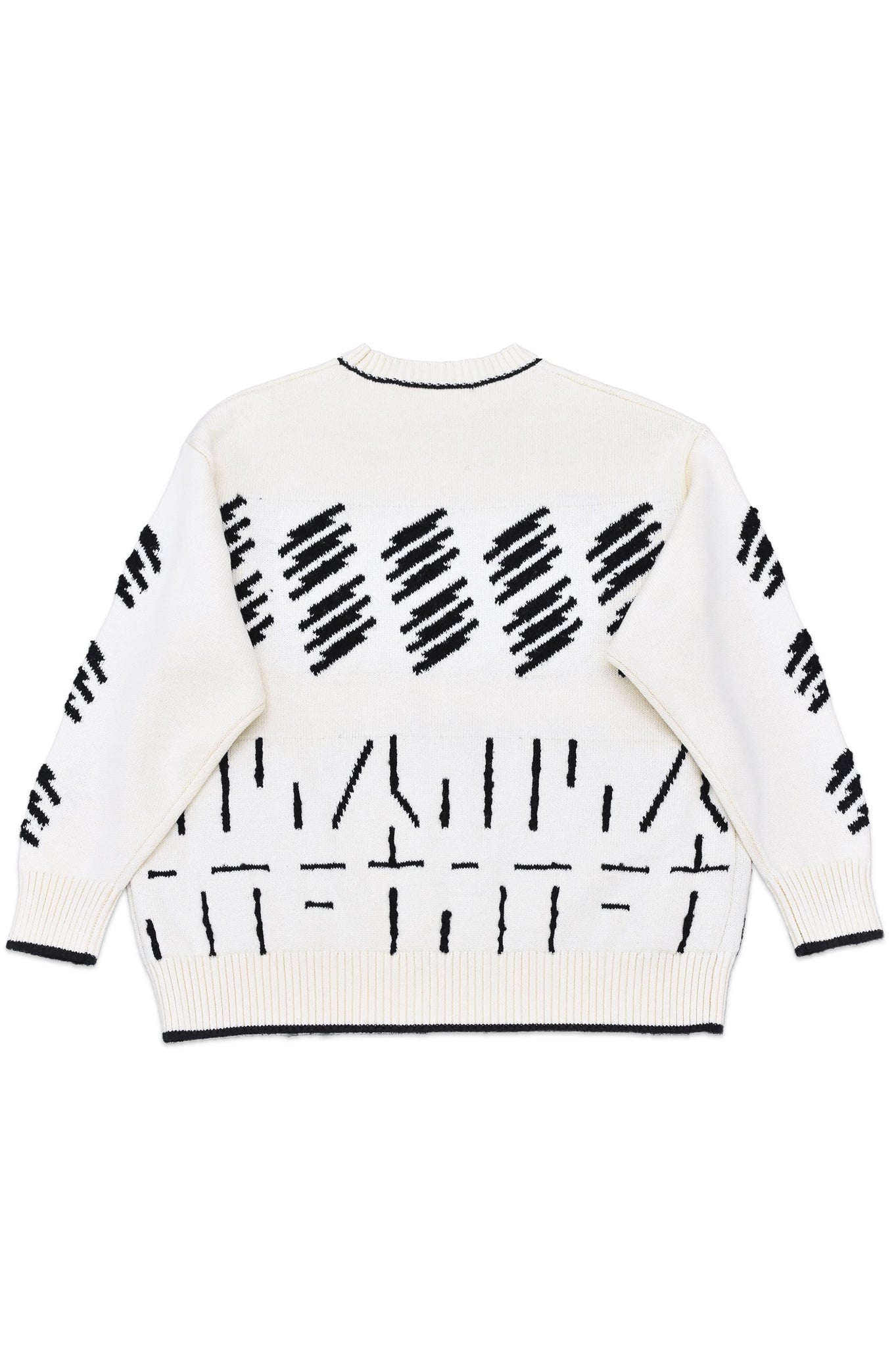 電子回路をイメージしたモチーフが散りばめられたニットプルオーバー。