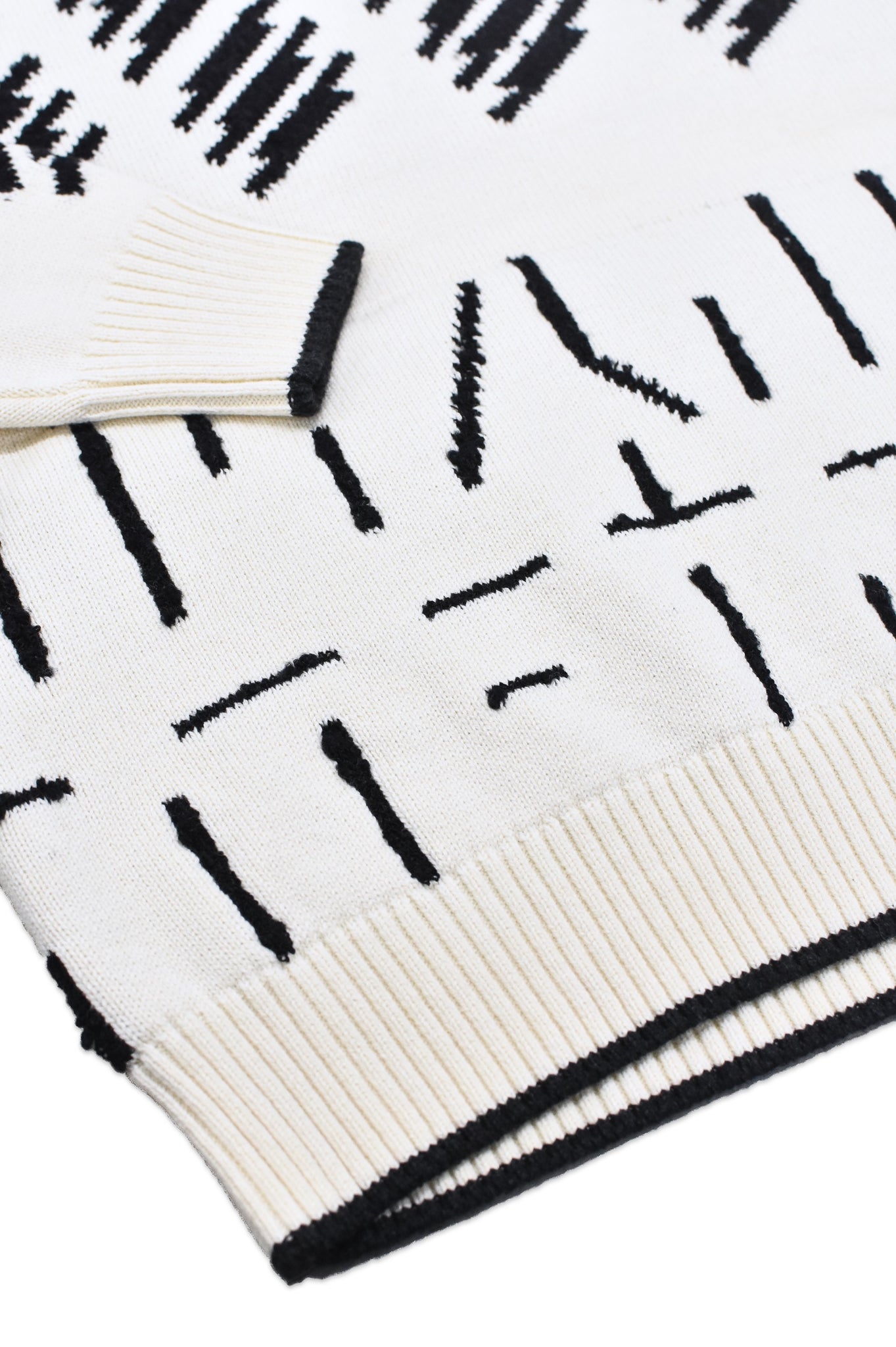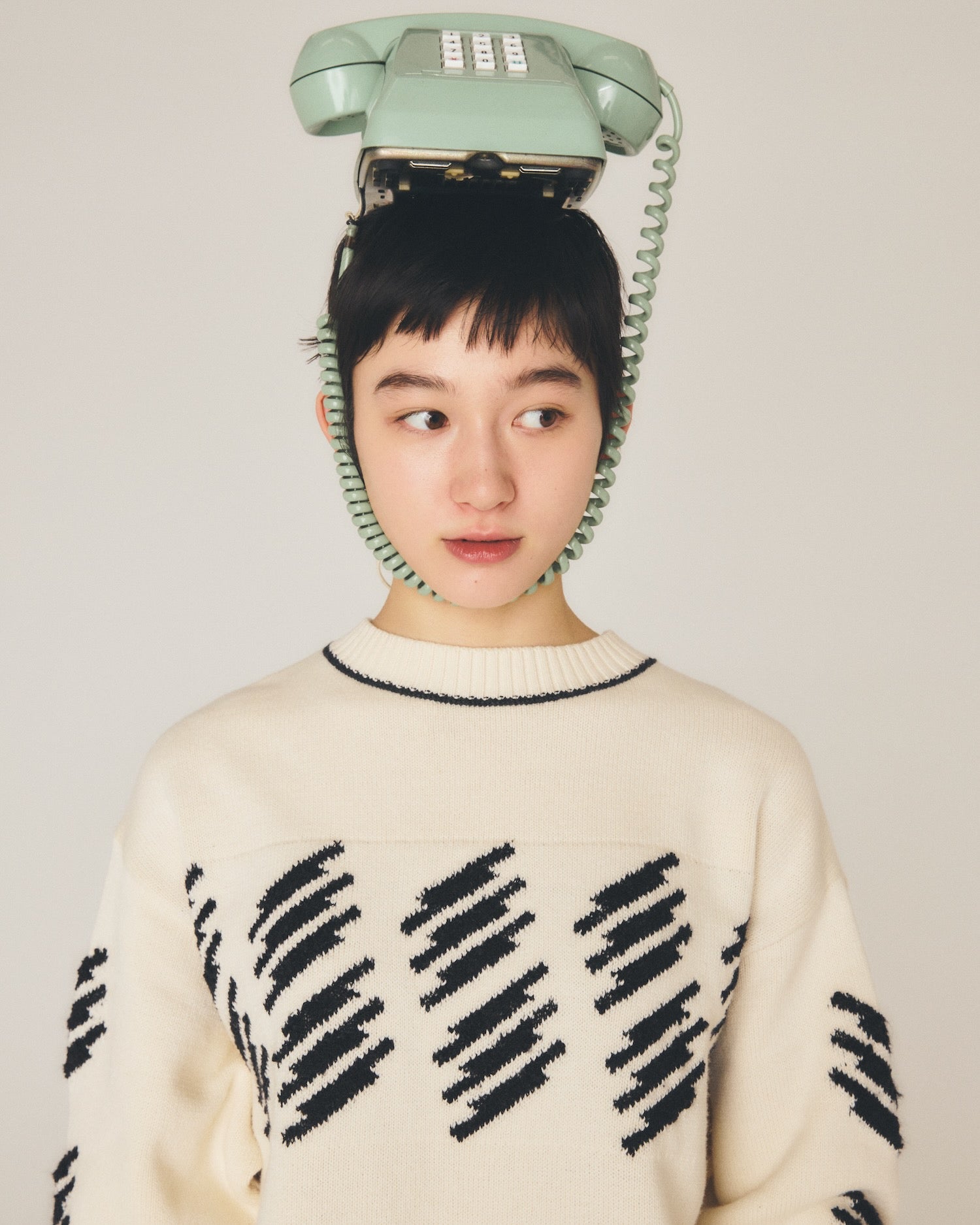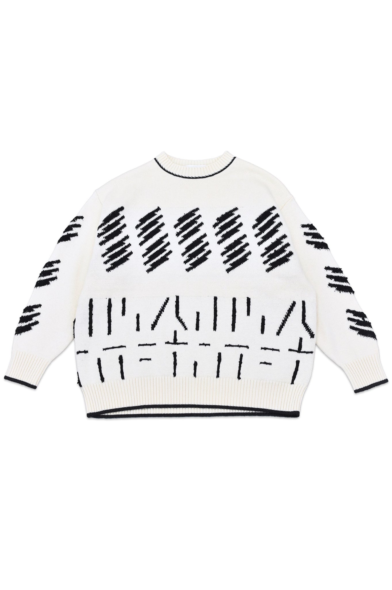 電子回路をイメージしたモチーフが散りばめられたニットプルオーバー。