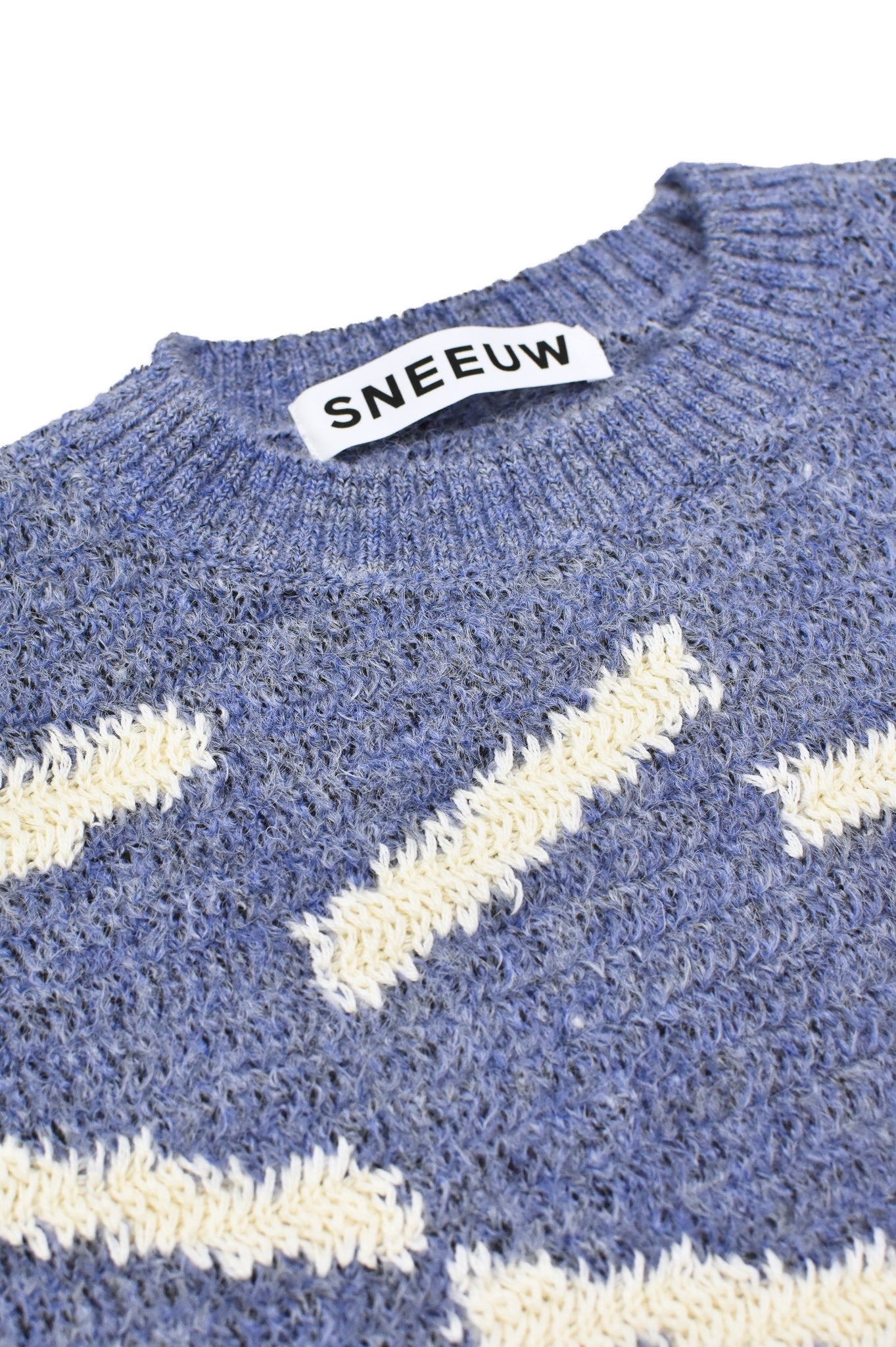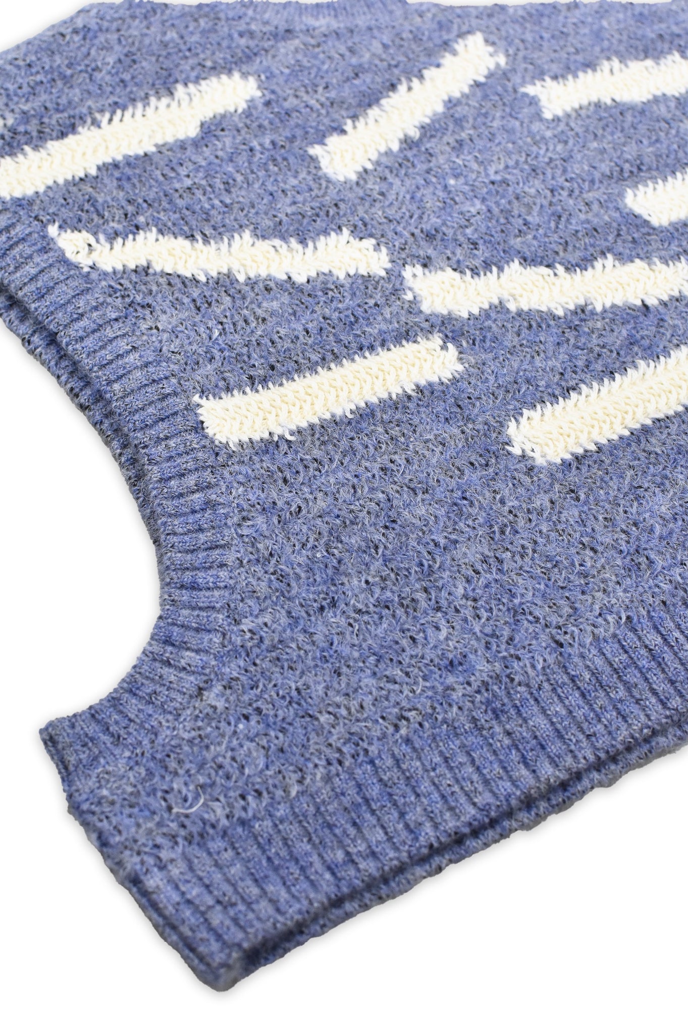 全体にやわらかなモヘアのミックス糸を使い、柄部分にはソリッドなコットンカシミヤの糸を使っています。