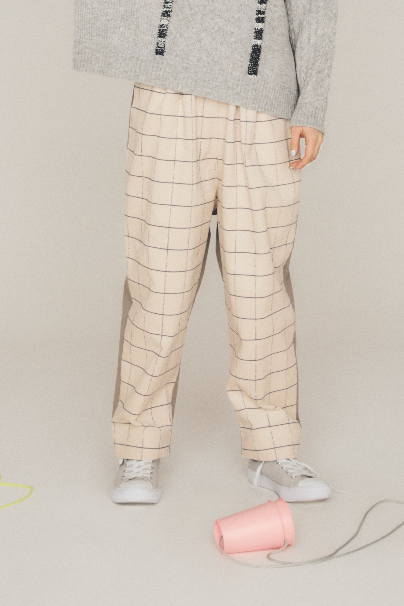 ぱっと見はチェックですが、ゆらぎのあるラインによって独特のニュアンスが生まれます。