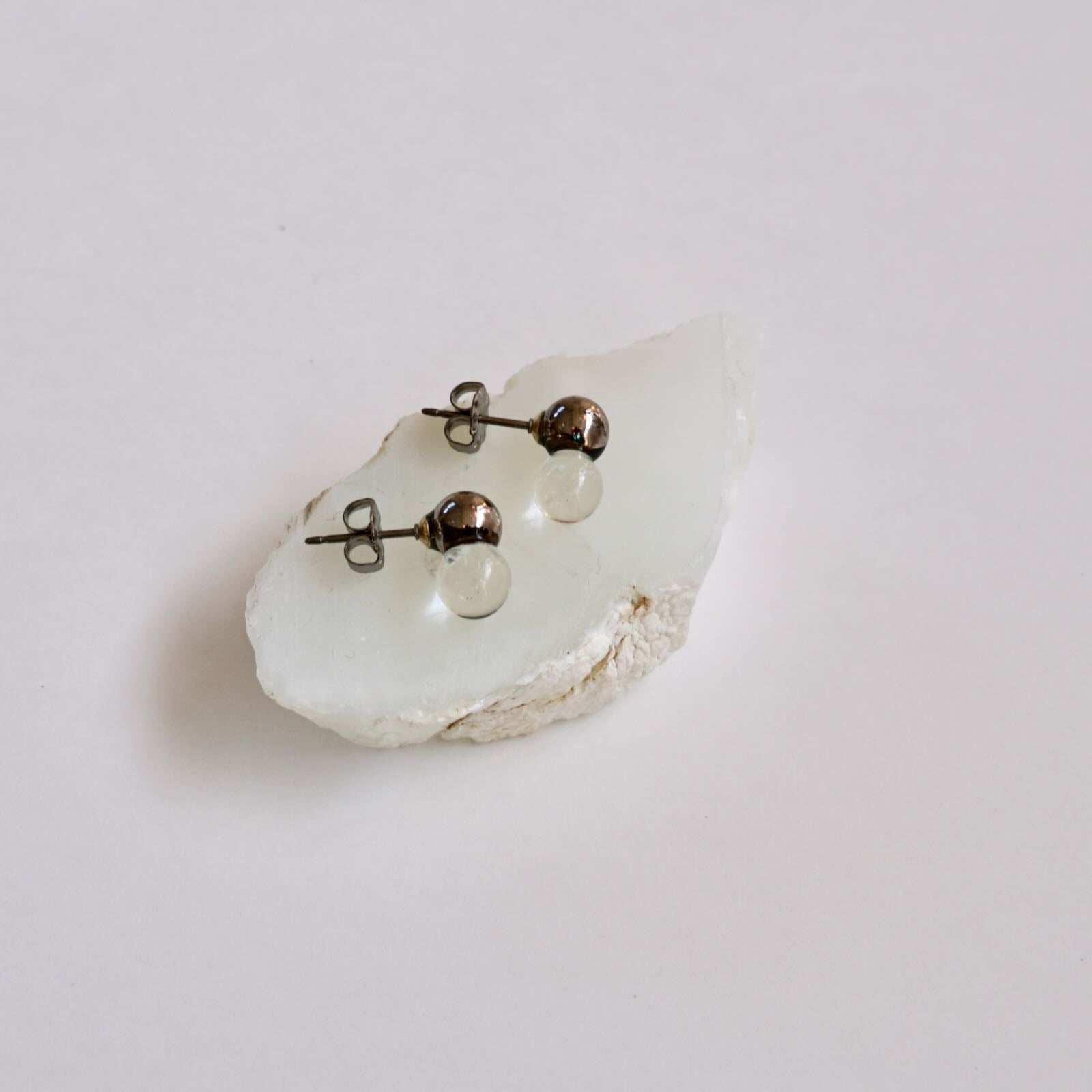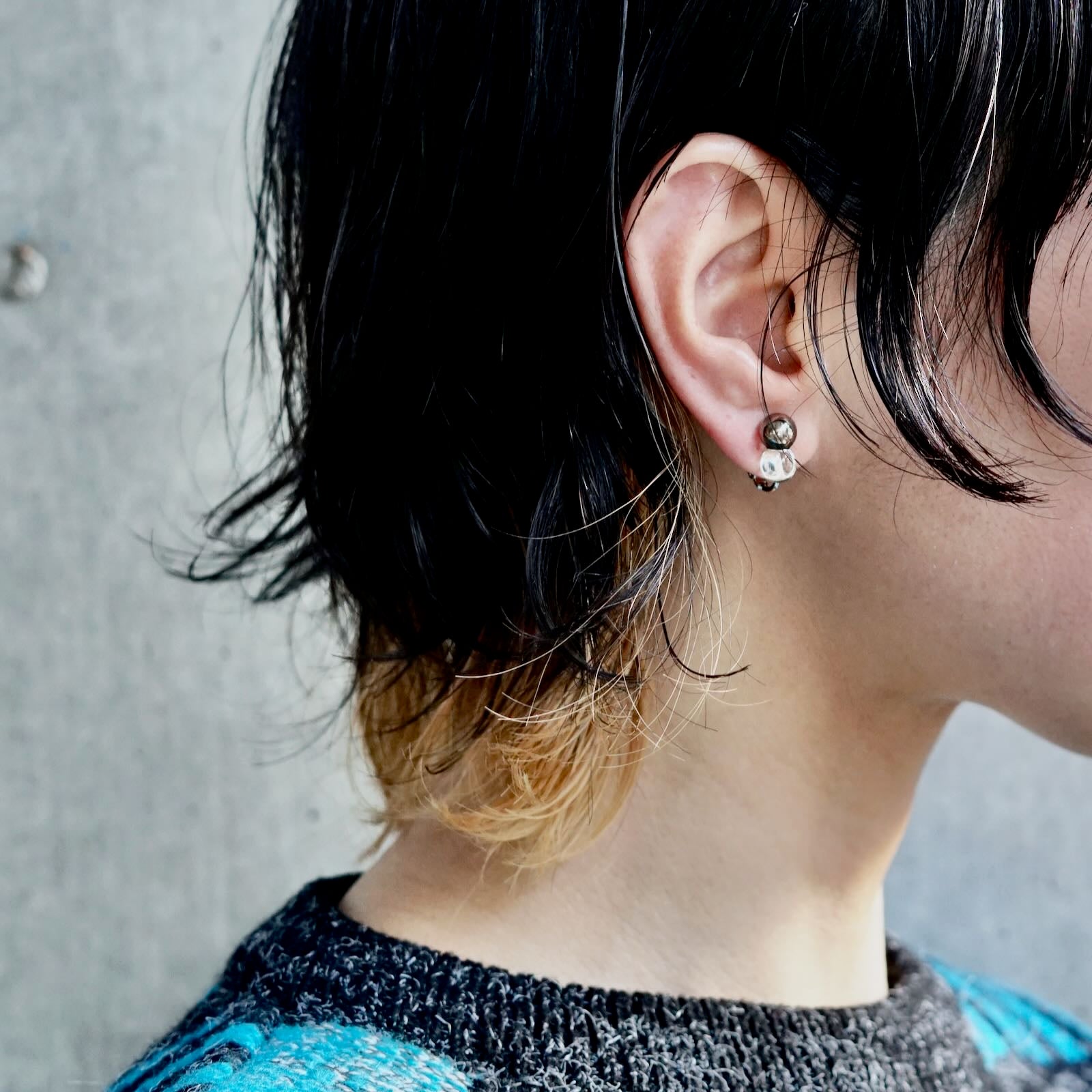 素材の異なる2つの球が重なり合ったシンプルかつ印象的な他にない耳飾り