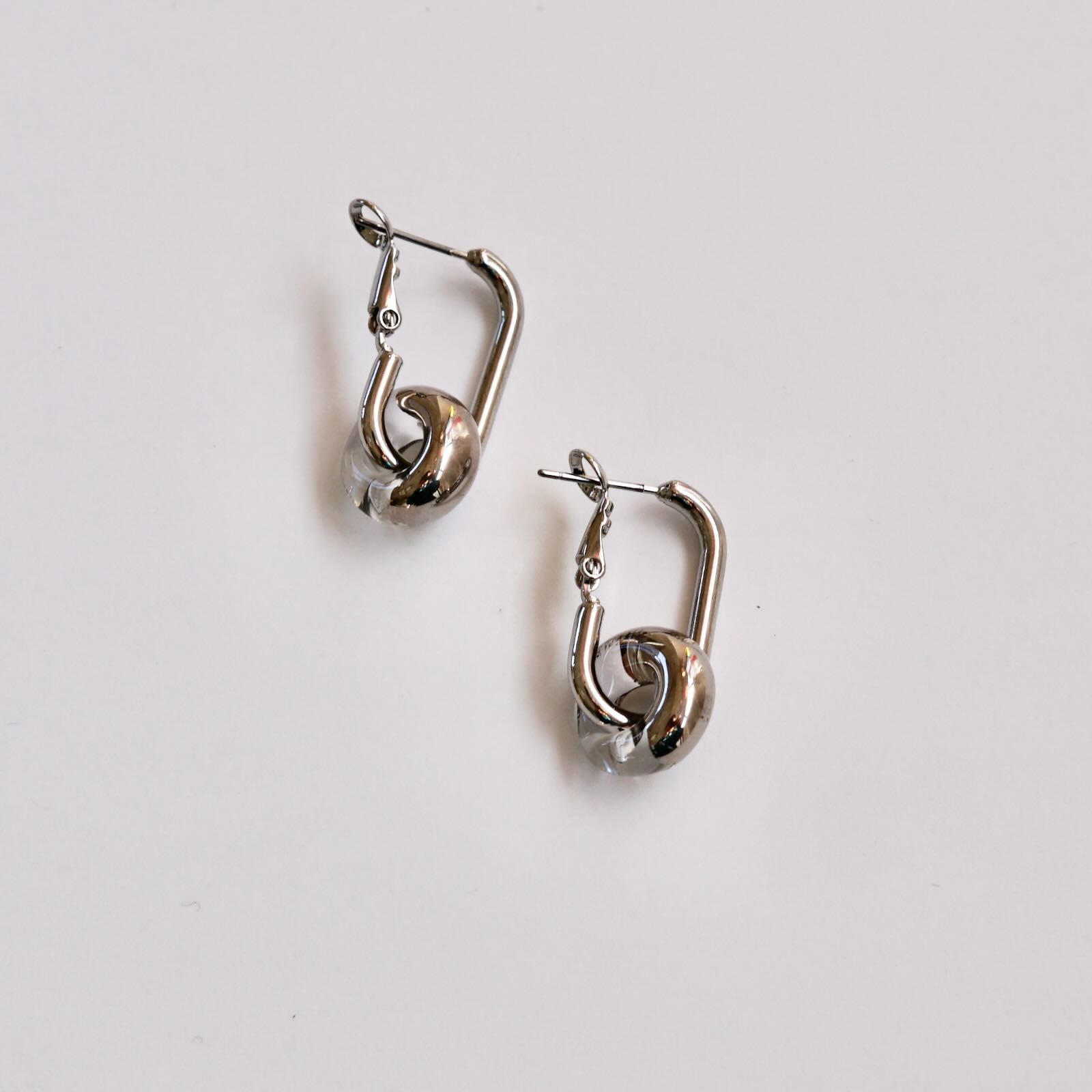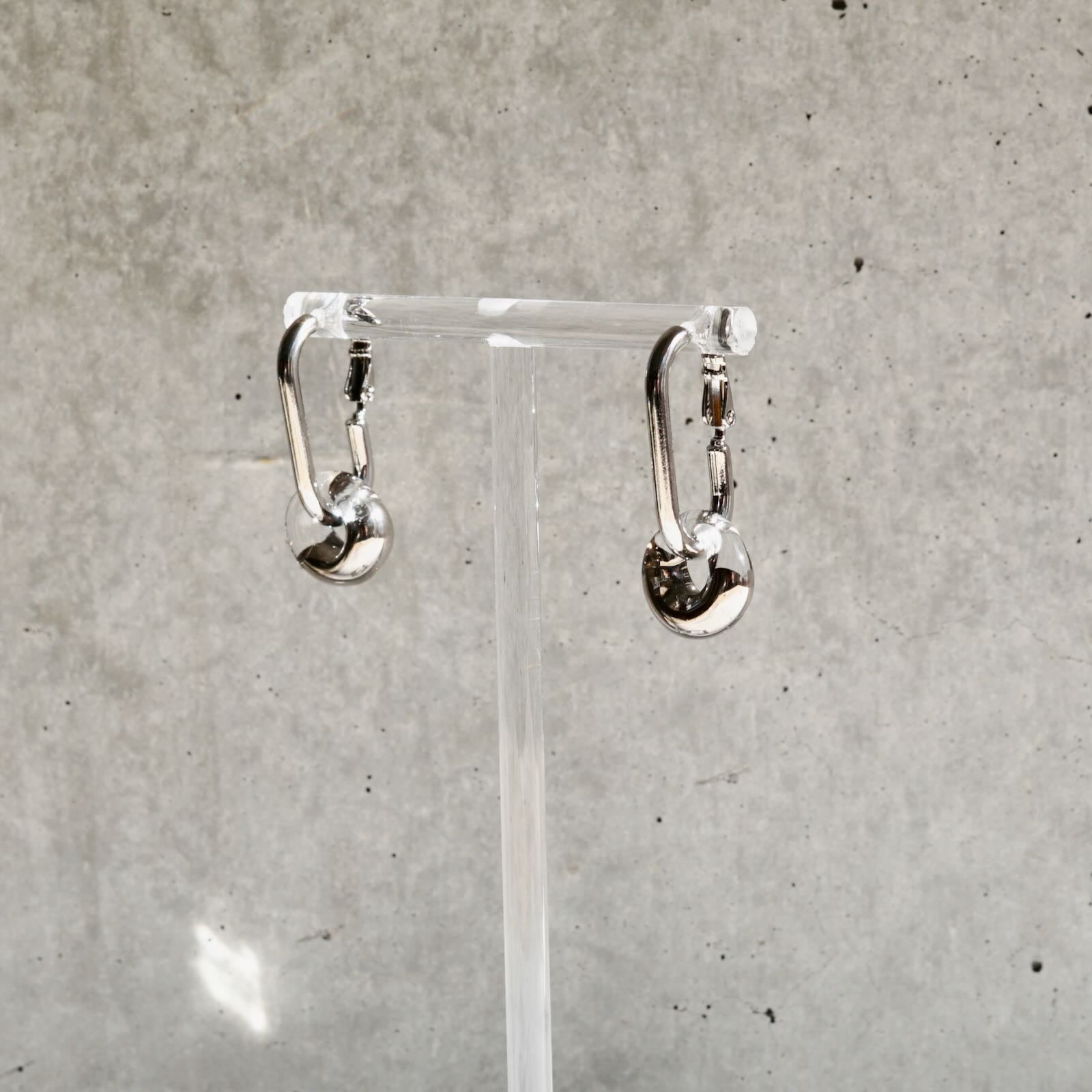 楕円のサークルにコロンとしたドーナッツ状に穴の空いたガラスパーツがぶら下がっていて、耳元で揺れるデザイン。