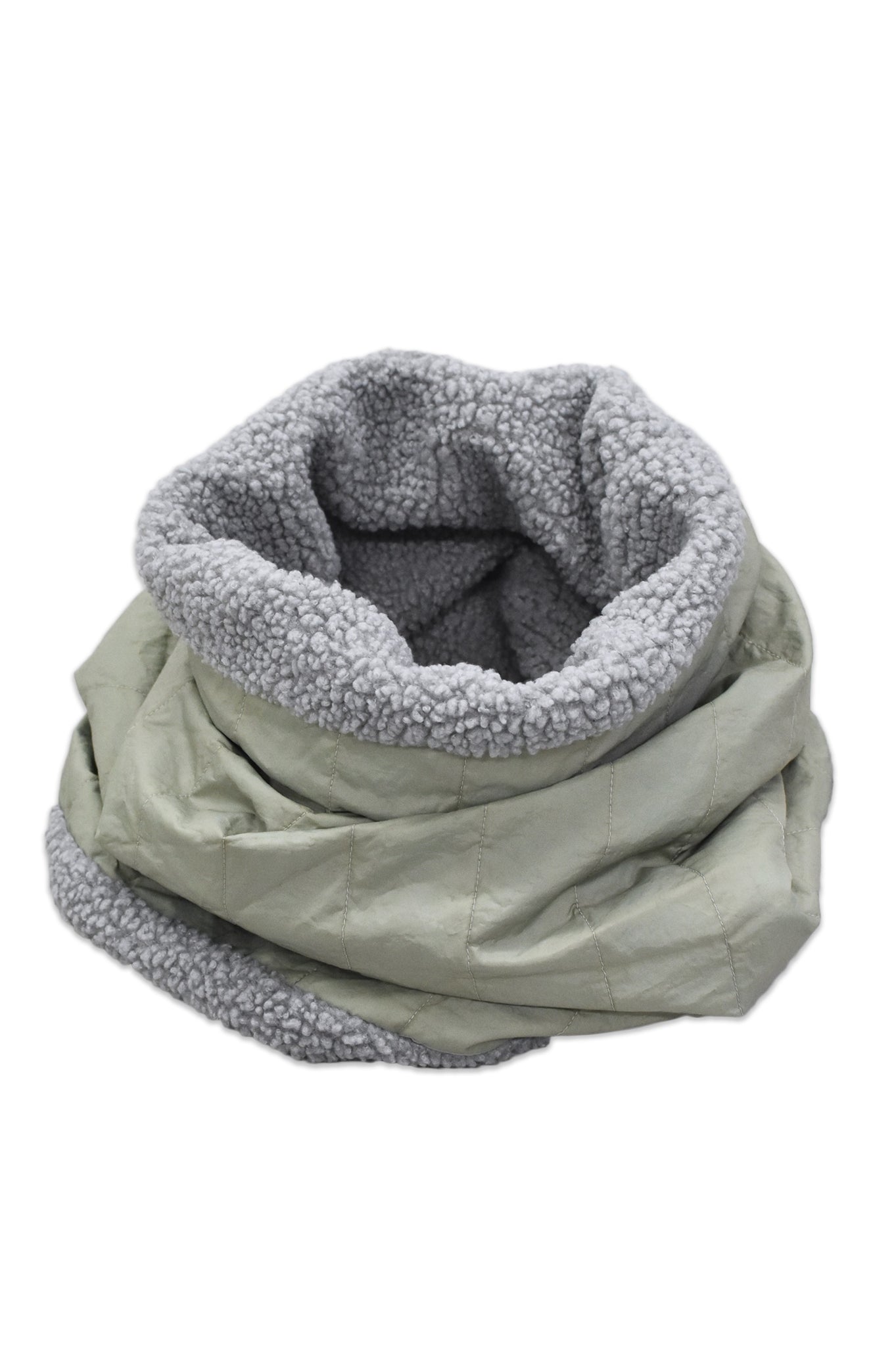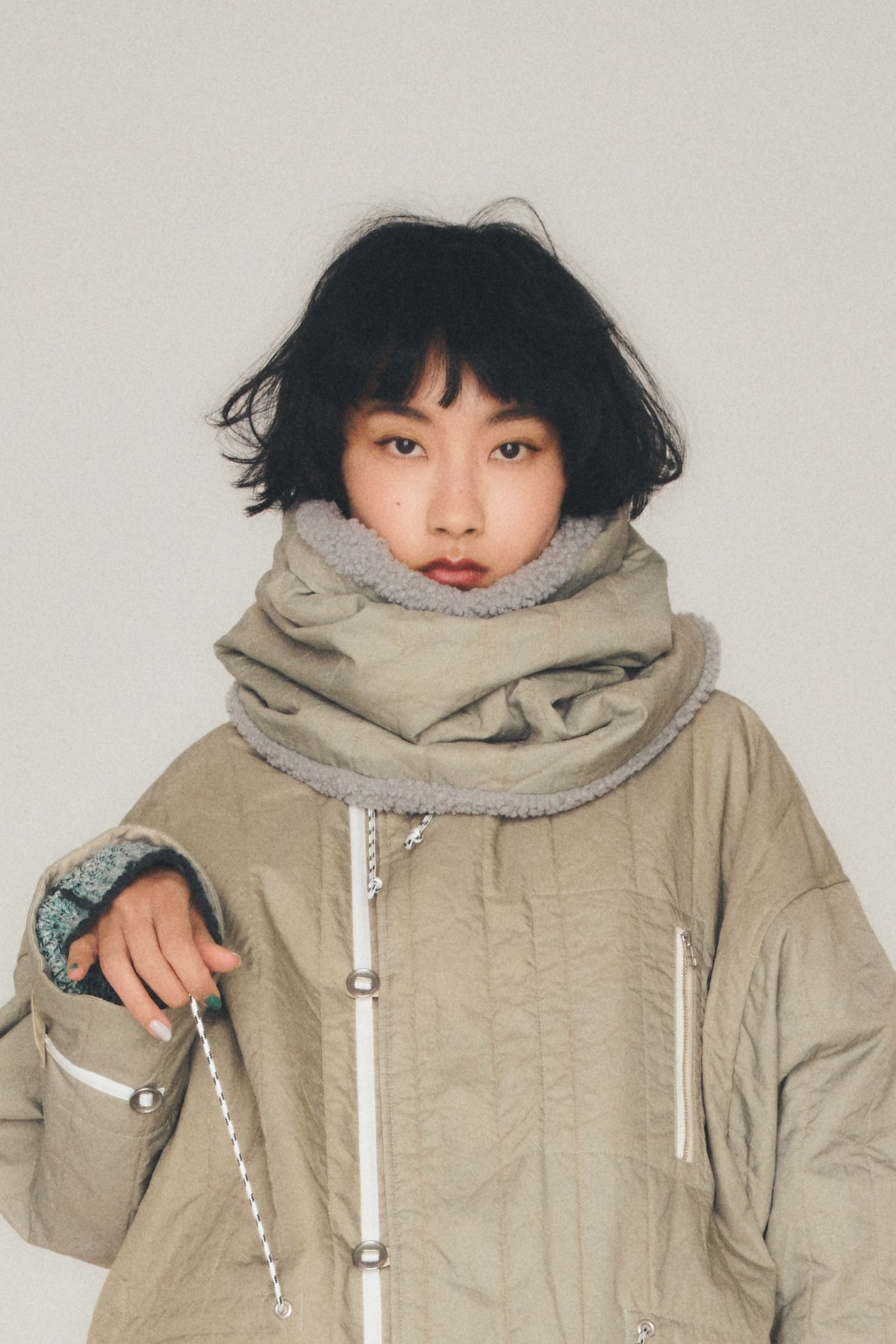 東炊きという江戸時代の染色方法を現代で再現した小さい釜を使って生地を柔らかく染め上げる手法で染められたオリジナルのキルティング生地を使ったネックウォーマー。